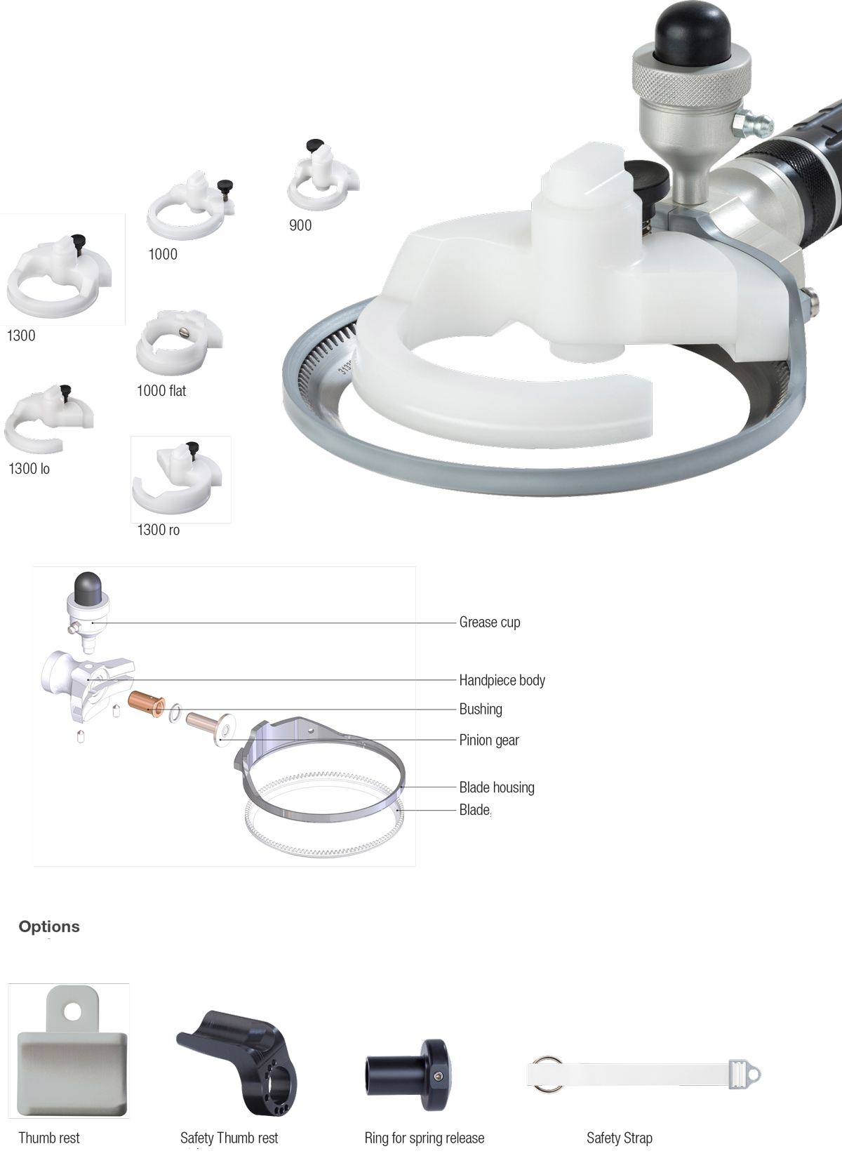 Maximum power is independent of the type of drive: The pneumatic handpiece is allowing you to use also all dimensions of blades, blade housing, handpiece body as well as accessories from the Turbo Trim assortment.